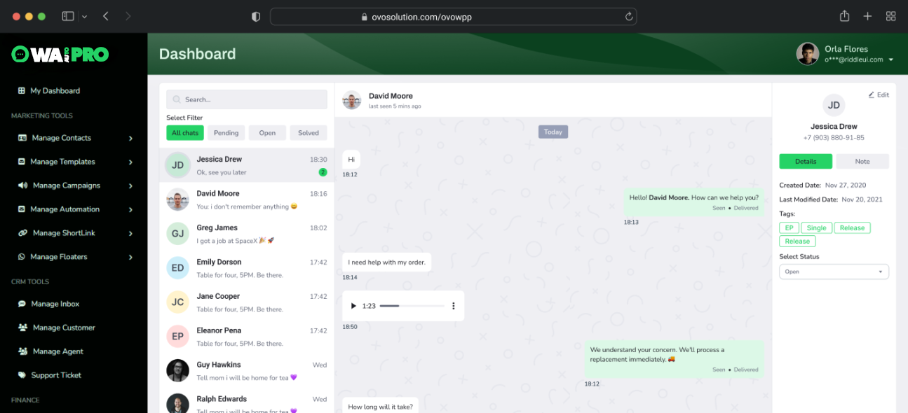 Yes. OvoWpp’s Pro and Enterprise plans allow you to connect and manage multiple numbers from one central dashboard.